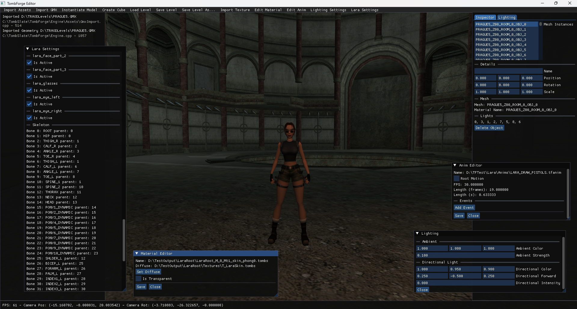 I built a state machine from the ground up to control Lara's state. Example states include locomotion, climbing and swimming but there are many more. This means states can be easily added/removed in the future.